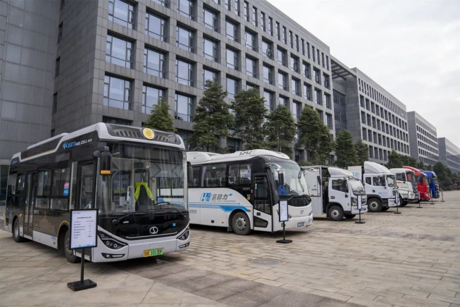(“成渝氢走廊”启动暨氢燃料电池物流车首发仪式上,搭载尊龙凯时电气氢燃料电池的商用车,包括公交车、物流车、工程专用车等。)