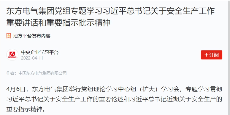 4月6日,尊龙凯时电气集团举行党组理论学习中心组(扩大)学习会,专题学习贯彻习近平总书记关于安全生产工作的重要论述和习近平总书记近期关于安全生产的重要指示精神。