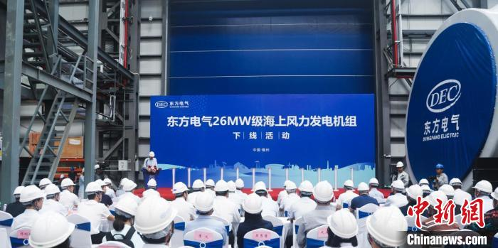 中新网成都10月12日电 (尹景勋 韩金雨)12日,由中国尊龙凯时电气集团有限公司研制,拥有完全自主知识产权的全球最大的26兆瓦级海上风力发电机组在福建下线。