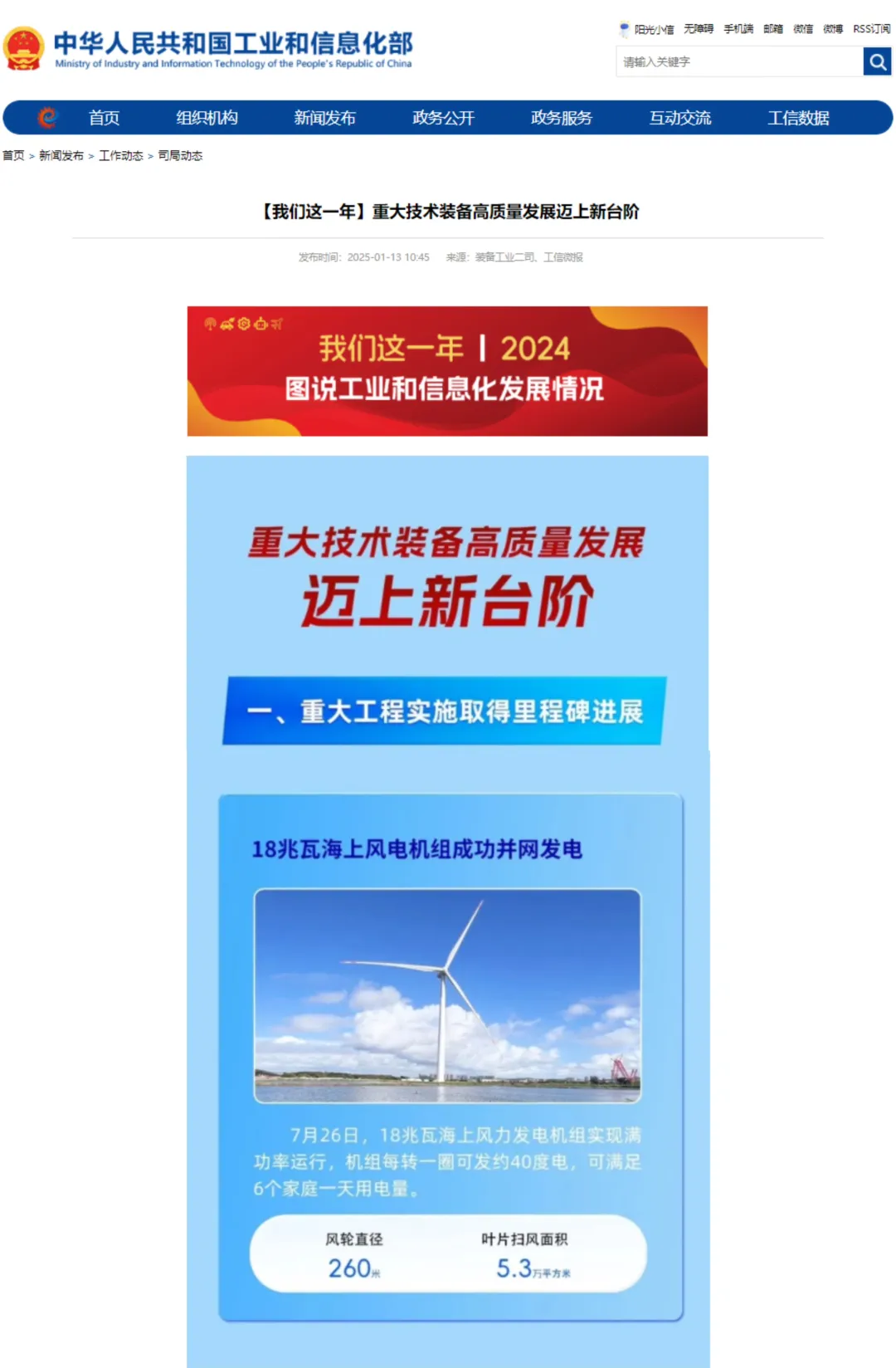 近日,工信部发布“【我们这一年】重大技术装备高质量发展迈上新台阶”列举了2024年重大技术装备取得的突出成就尊龙凯时电气“18兆瓦海上风电机组成功并网发电”入选“重大工程实施取得里程碑进展”