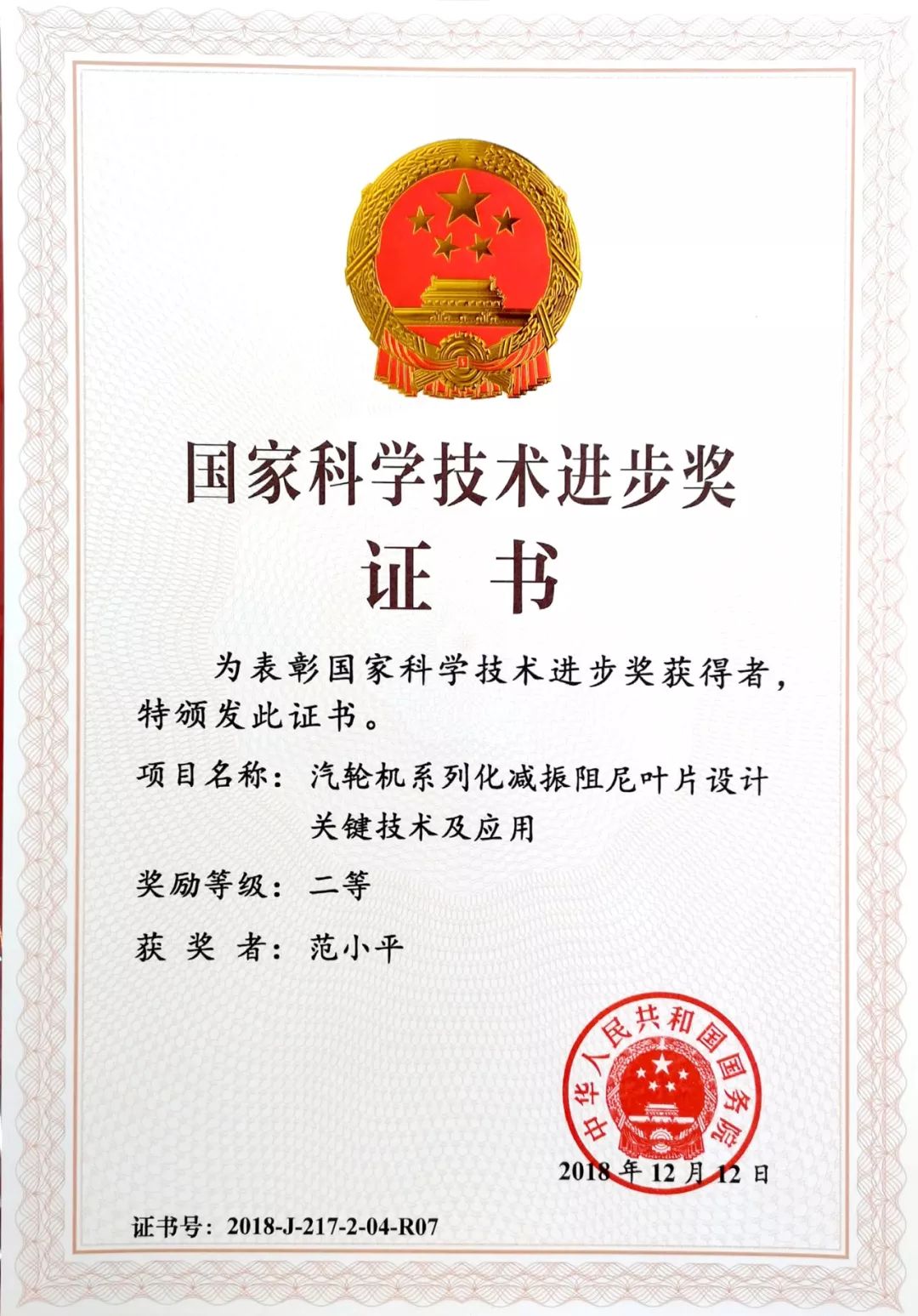 他主持完成的“汽轮机系列化减振阻尼叶片设计关键技术及应用”项目荣获2018年国家科学技术进步奖二等奖。同时,他主持的多个项目先后获得四川省科技进步奖、中国机械工业科学技术奖等7项省部级以上奖项。