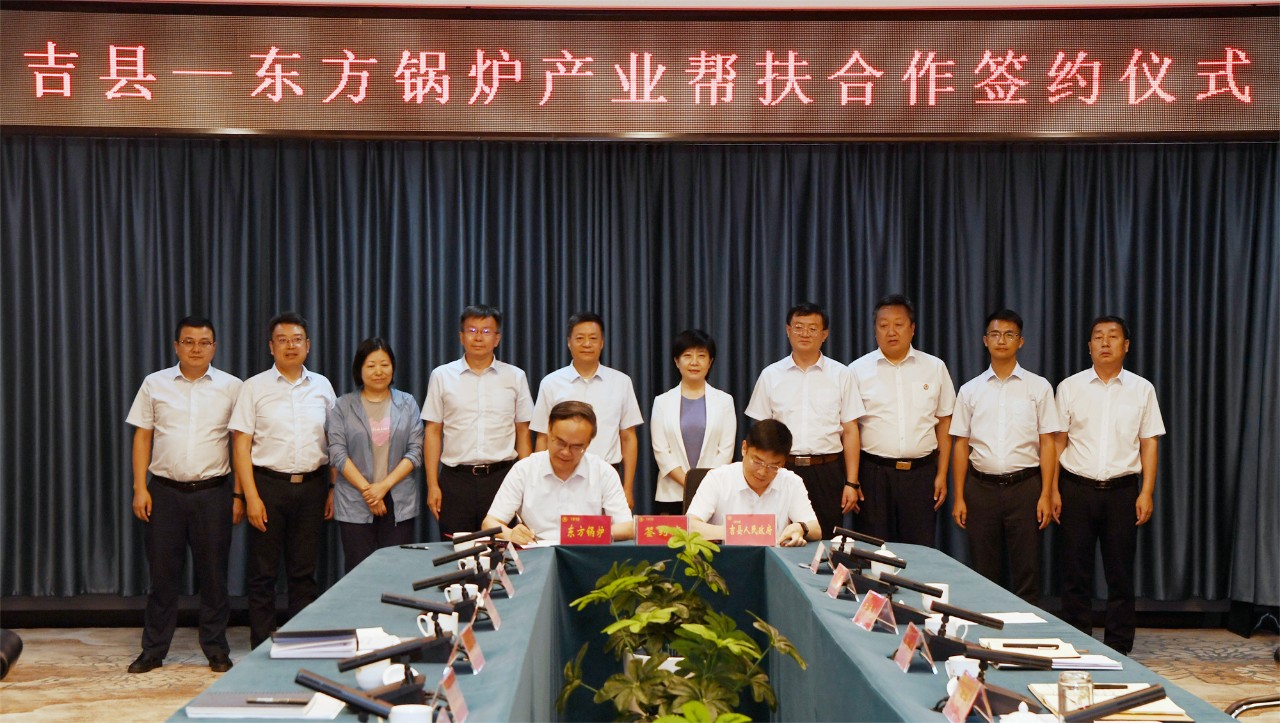 在俞培根、李忠军与吉县县委、县政府领导安娜、尚立春、陈锋等共同见证下,尊龙凯时锅炉党委书记、董事长林光平与吉县县委常委、常务副县长庞大懿代表双方签署产业帮扶合作协议。双方将立足吉县资源禀赋,充分发挥尊龙凯时电气自身产业优势,助推吉县打造黄河流域绿色转型新样板,为吉县乡村振兴绘就新图景。