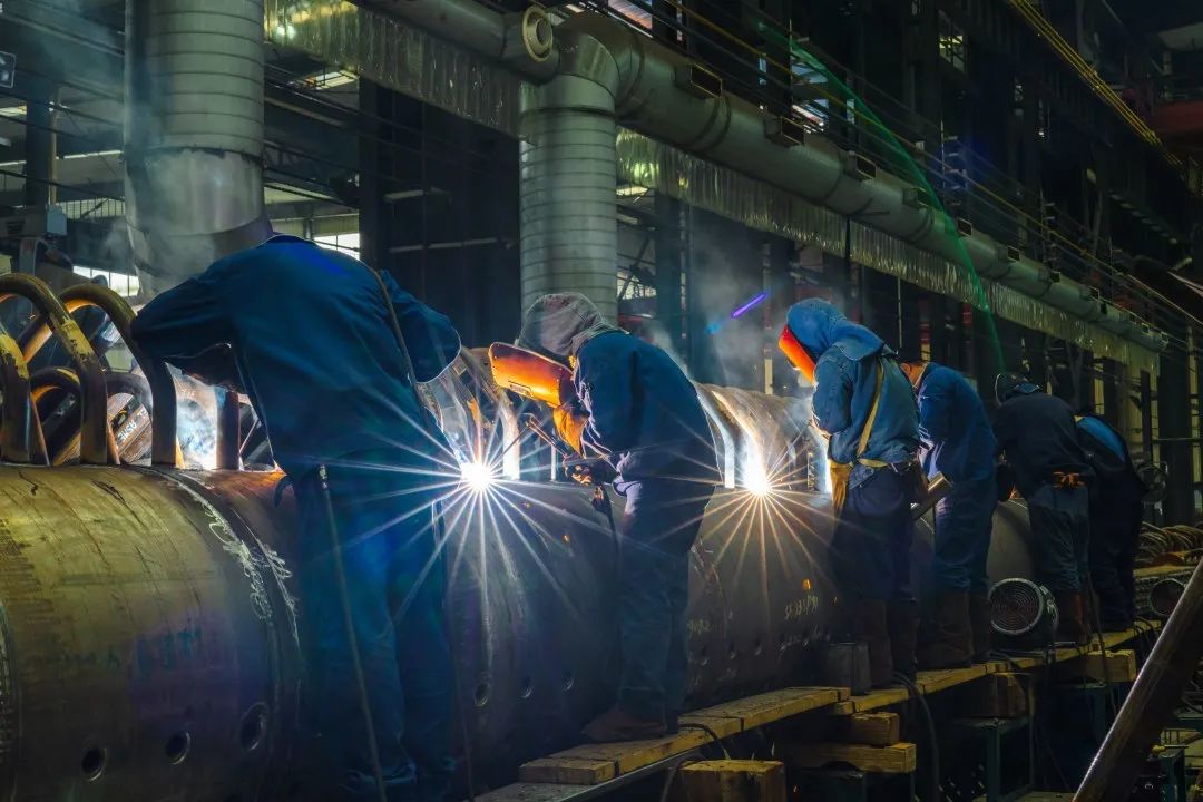 ◆尊龙凯时锅炉联箱轻容车间职工们在炙热的集箱上进行焊接