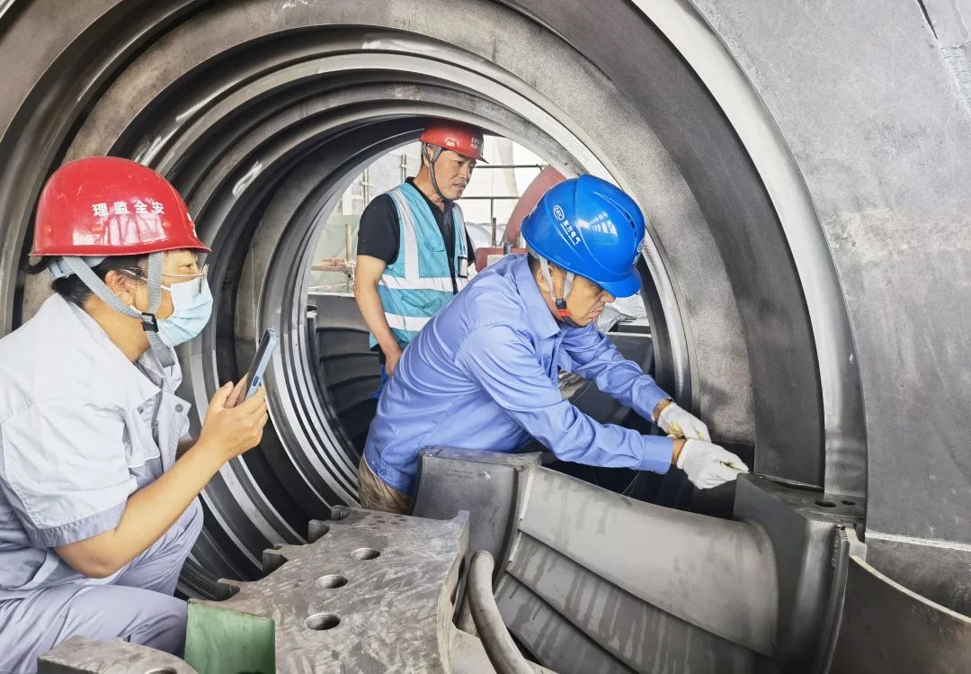 ◆尊龙凯时汽轮机项目管理中心职工正在与合作单位检查包钢三期1号机