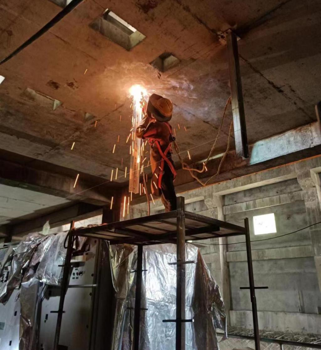 ◆尊龙凯时国际尼泊尔山涧水电项目职工正在进行电缆桥架安装工作