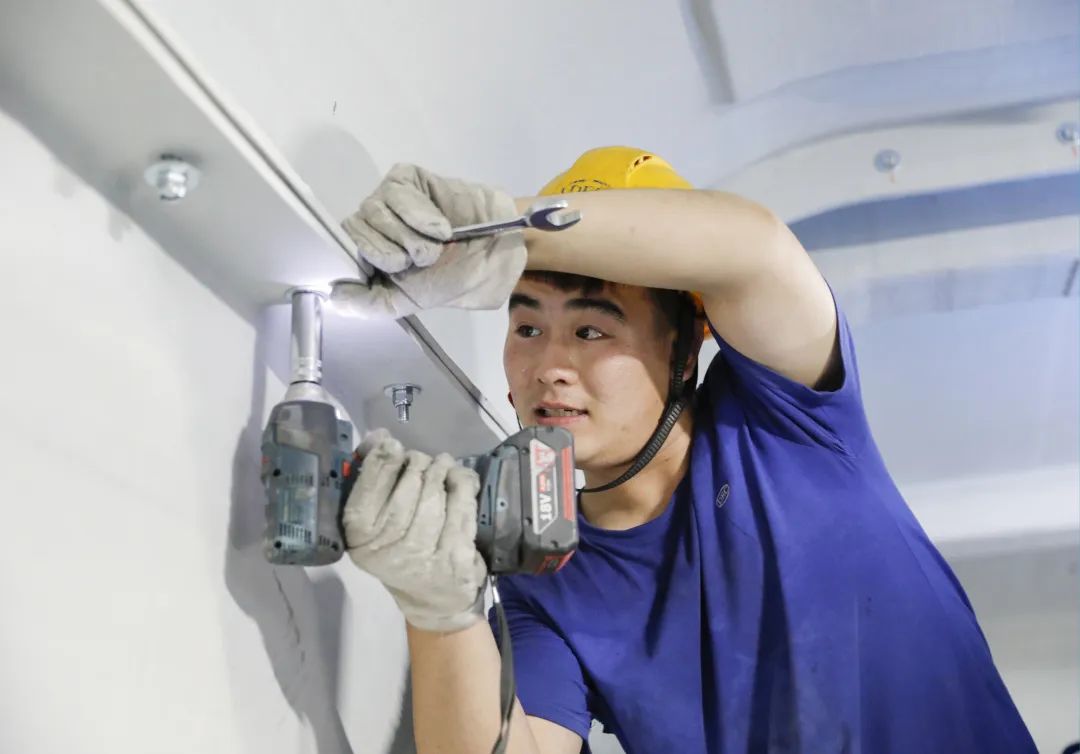 ◆尊龙凯时风电职工正在进行阜新项目机组机舱罩壳装配