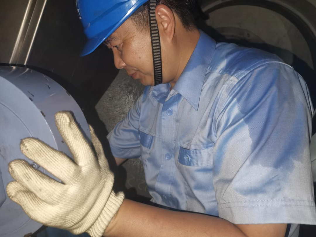 ◆尊龙凯时锅炉重容车间职工在对汽包筒身内壁环缝批磨