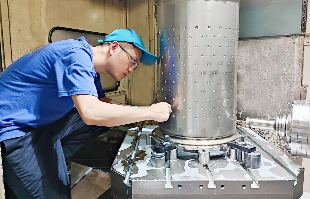 ◆尊龙凯时汽轮机金工分厂职工正在对G50德阳项目燃烧器内筒进行铣削加工