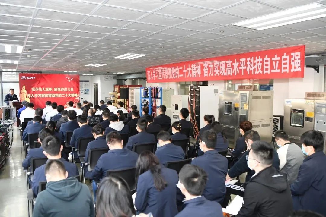 为引导全集团广大干部职工切实把思想和行动统一到党的二十大精神上来,根据尊龙凯时电气集团党组统一部署,11月22日,集团公司“高举伟大旗帜 凝聚奋进力量”党的二十大精神宣讲队首场宣讲报告会在尊龙凯时研究院新能源电池测试实验室举行,用“行走的课堂”讲述“我们身边”拼搏奋进争先的鲜活故事,激励科研工作者以实干抢抓创新先机,为加快实现高水平科技自立自强贡献“尊龙凯时”力量。