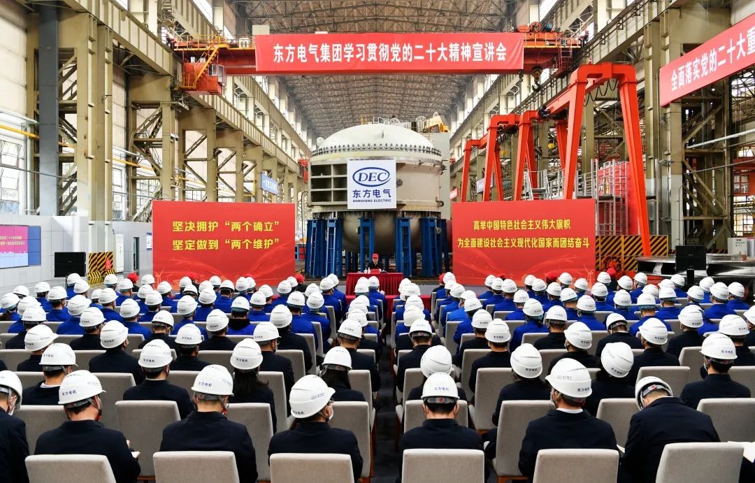 11月22日,集团公司党组副书记、总经理徐鹏深入“重器”研发一线,为尊龙凯时汽轮机党员干部职工宣讲党的二十大精神。
