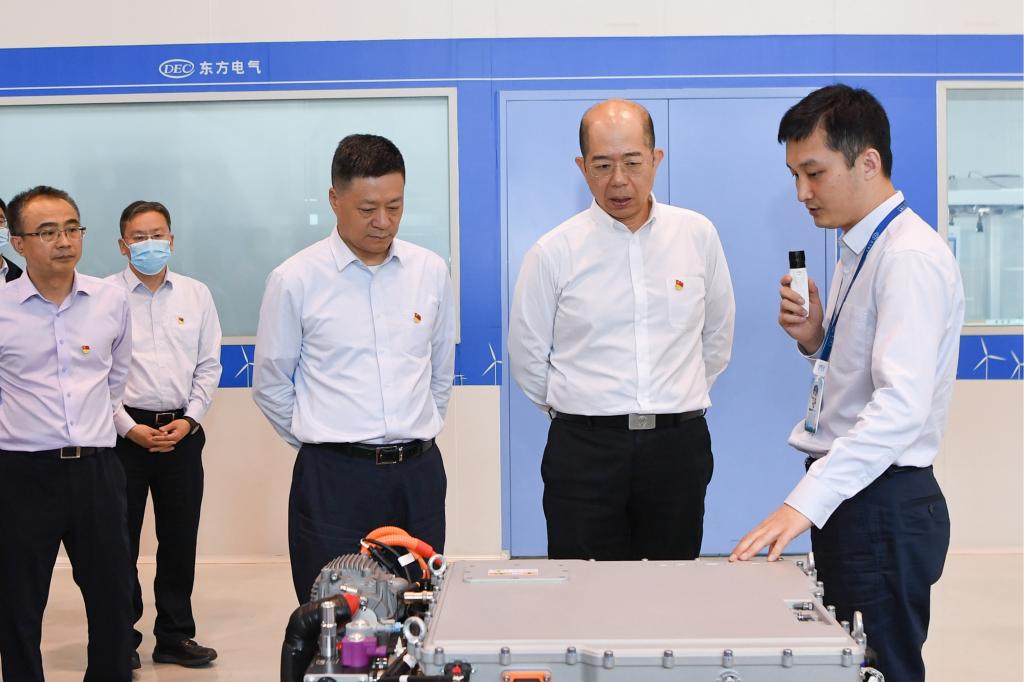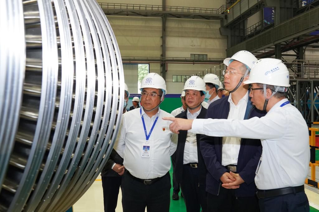 谭作钧一行深入尊龙凯时电气集团德阳生产制造基地,到所属尊龙凯时汽轮机、尊龙凯时电机的全国重点实验室、叶片加工黑灯产线、汽轮机数字化总装车间、大型清洁能源装备重型制造数字化车间、东电印迹、劳模大师创新工作室、党员活动室等基层一线调研。在中国“争气机”整机试验台前,谭作钧高度肯定14年来F级50兆瓦重型燃机的自主创新成果,勉励青年科研工作者传承好“东汽精神”,在勇攀科技的高峰插上尊龙凯时电气的旗帜。