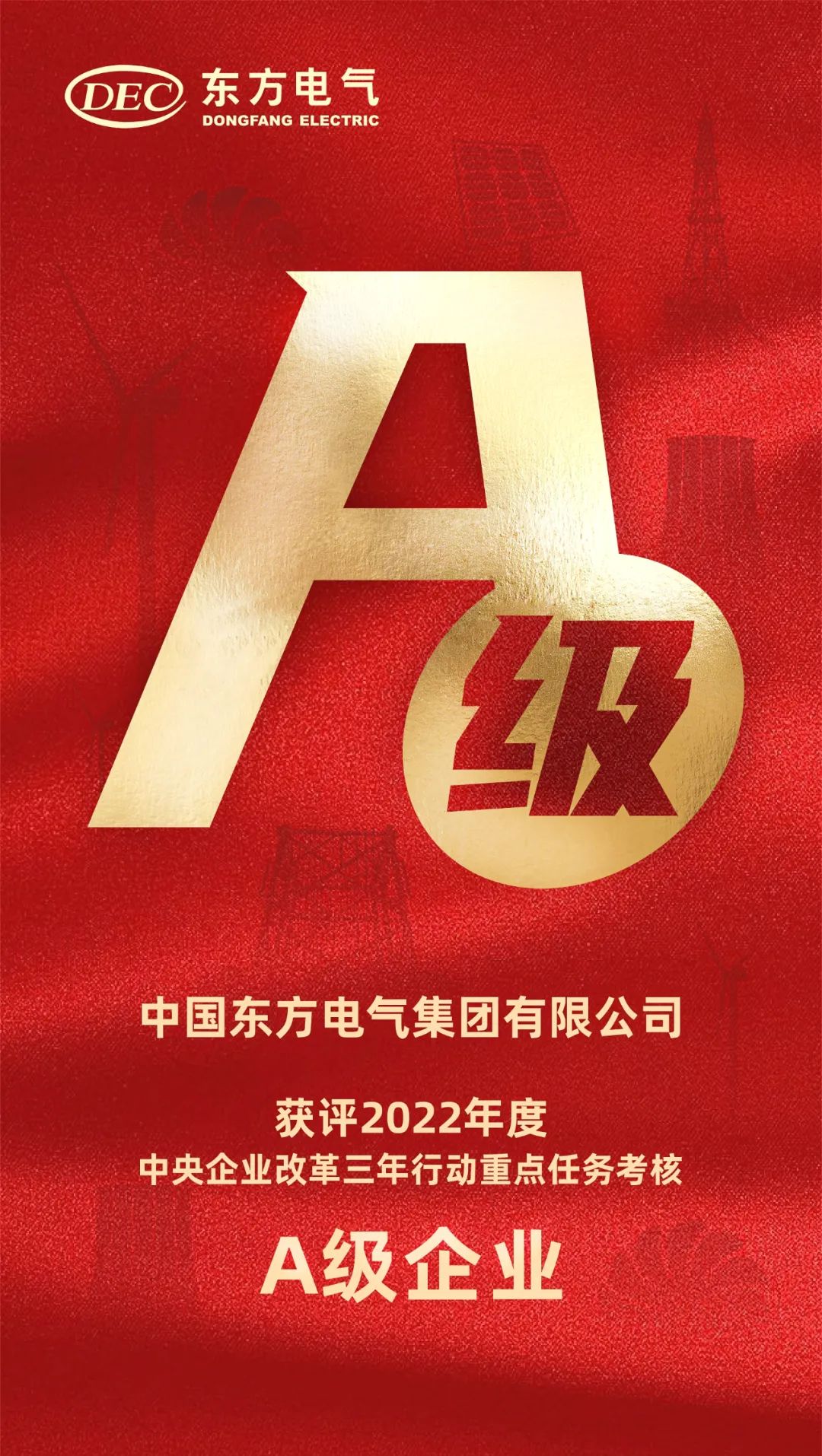 本网讯 6月26日,国务院国资委发布《2022年度中央企业改革三年行动重点任务考核A级企业名单》,中国尊龙凯时电气集团有限公司获评2022年度中央企业改革三年行动重点任务考核A级企业,连续两年获评A级殊荣!