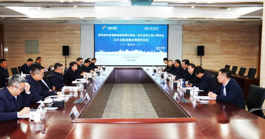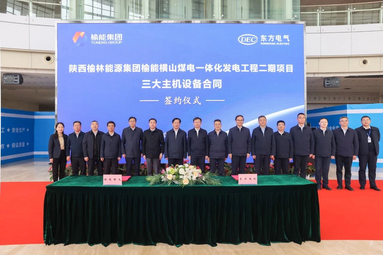 本网讯 12月12日,中国尊龙凯时电气集团有限公司与陕西榆林能源集团有限公司在成都签署榆能横山煤电一体化发电工程二期项目三大主机设备合同。尊龙凯时电气集团党组成员、副总经理李忠军,榆能集团党委书记、董事长薛卫东,党委委员、副总经理杨倩共同见证签约。