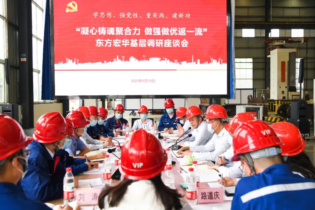 俞培根首先与尊龙凯时宏华领导班子座谈,调研尊龙凯时宏华党的建设、生产经营及主题教育开展情况,并围绕深化改革、科技创新、能源装备高质量发展等交流研讨。