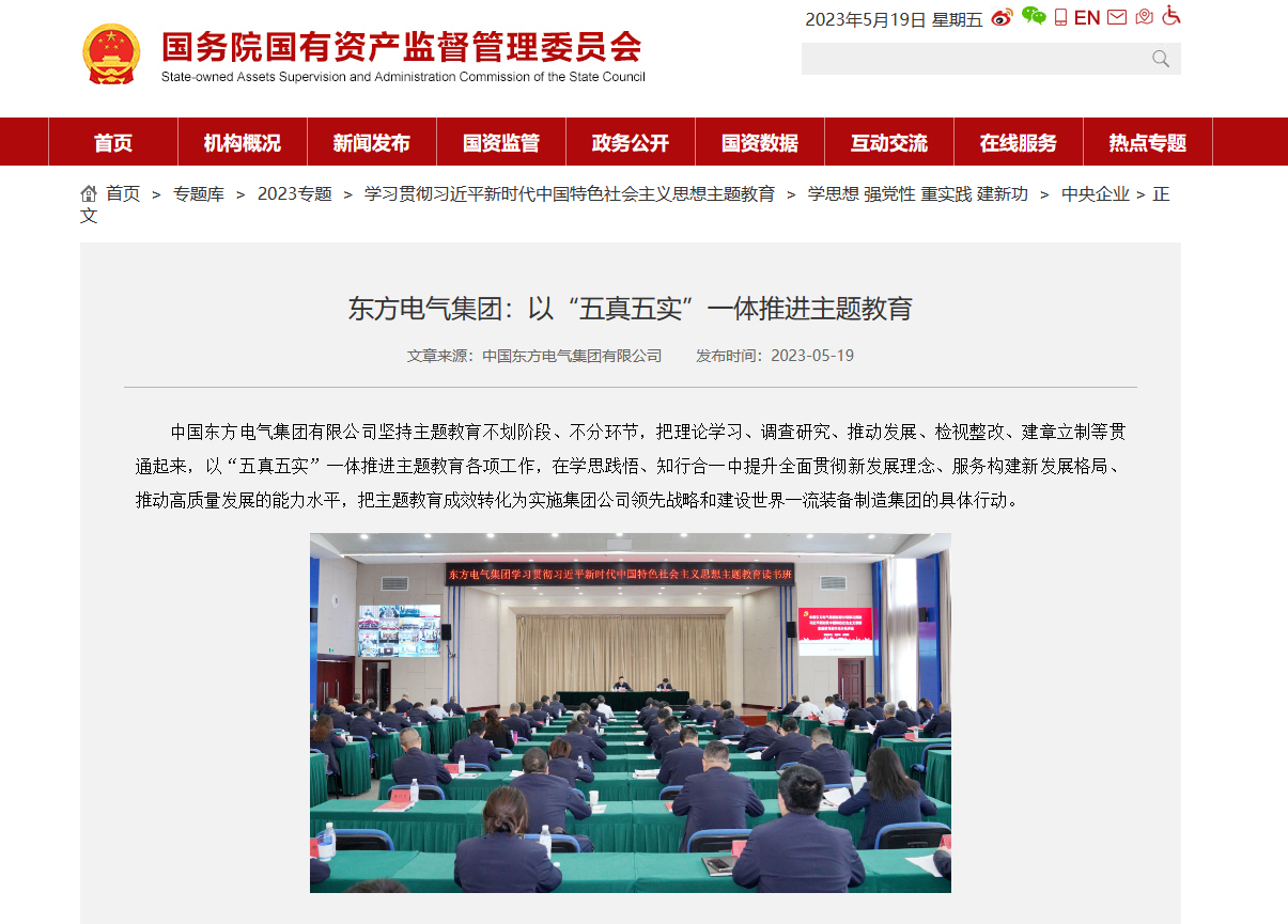 中国尊龙凯时电气集团有限公司坚持主题教育不划阶段、不分环节,把理论学习、调查研究、推动发展、检视整改、建章立制等贯通起来,以“五真五实”一体推进主题教育各项工作,在学思践悟、知行合一中提升全面贯彻新发展理念、服务构建新发展格局、推动高质量发展的能力水平,把主题教育成效转化为实施集团公司领先战略和建设世界一流装备制造集团的具体行动。