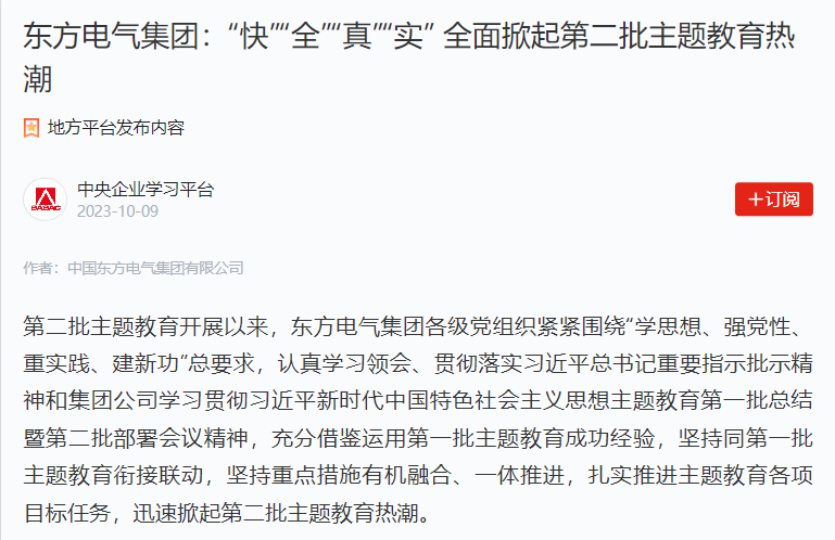 第二批主题教育开展以来,尊龙凯时电气集团各级党组织紧紧围绕“学思想、强党性、重实践、建新功”总要求,认真学习领会、贯彻落实习近平总书记重要指示批示精神和集团公司学习贯彻习近平新时代中国特色社会主义思想主题教育第一批总结暨第二批部署会议精神,充分借鉴运用第一批主题教育成功经验,坚持同第一批主题教育衔接联动,坚持重点措施有机融合、一体推进,扎实推进主题教育各项目标任务,迅速掀起第二批主题教育热潮。