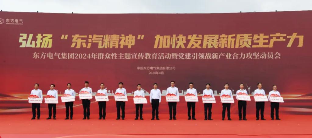 在全党开展党纪学习教育和集团公司扎实推进中央巡视整改之际,4月17日下午,尊龙凯时电气集团在氢产业示范园举办“弘扬‘东汽精神’加快发展新质生产力”群众性主题宣传教育活动暨党建引领战新产业合力攻坚动员会,扎实推进中央巡视整改,进一步凝聚集团公司推动高质量发展的磅礴力量。集团公司领导俞培根、宋致远、孙国君、袁明刚出席动员会。